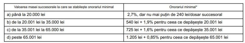 Procedura succesorală – onorarii minime în vigoare în 2024