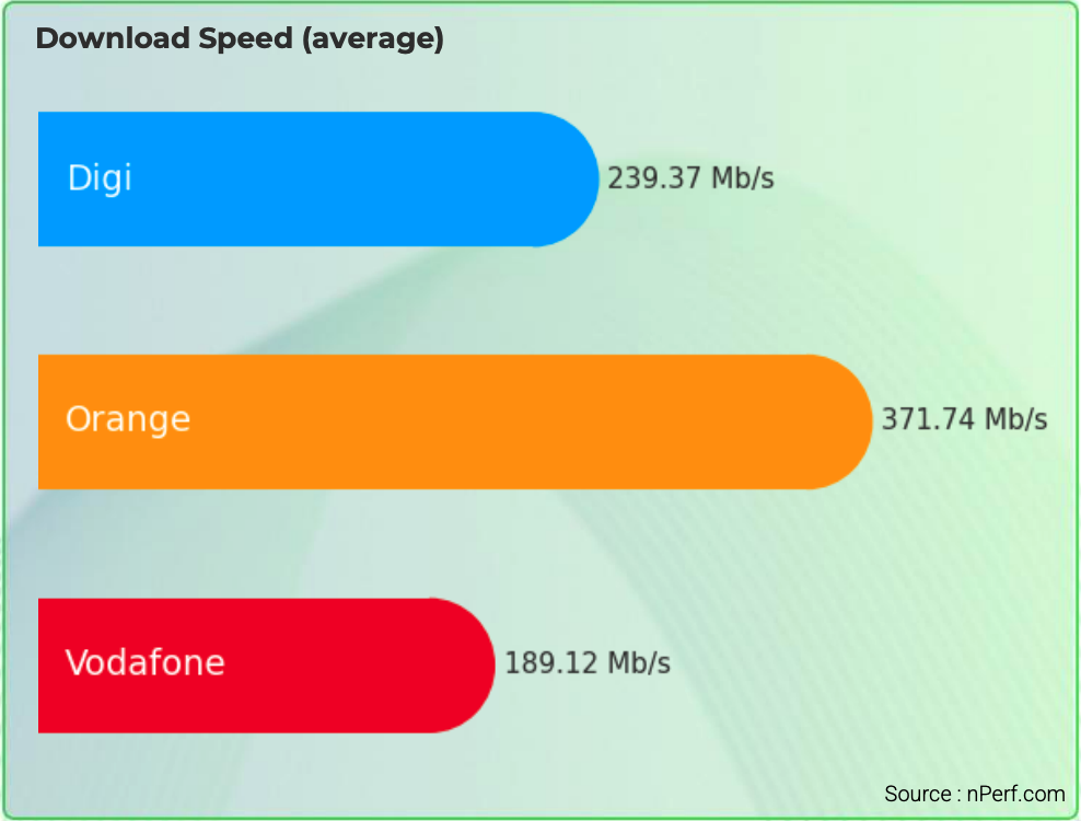 Orange se află în frunte, cu 137.311 de puncte și domină internetul WiFi, dar și prin fibră optică, atât la viteza de descărcare, cât și la viteza de încărcare. Operatorul este lider în viteza de descărcare cu 371,7 Mbps, ideală pentru streaming HD și descărcări rapide.