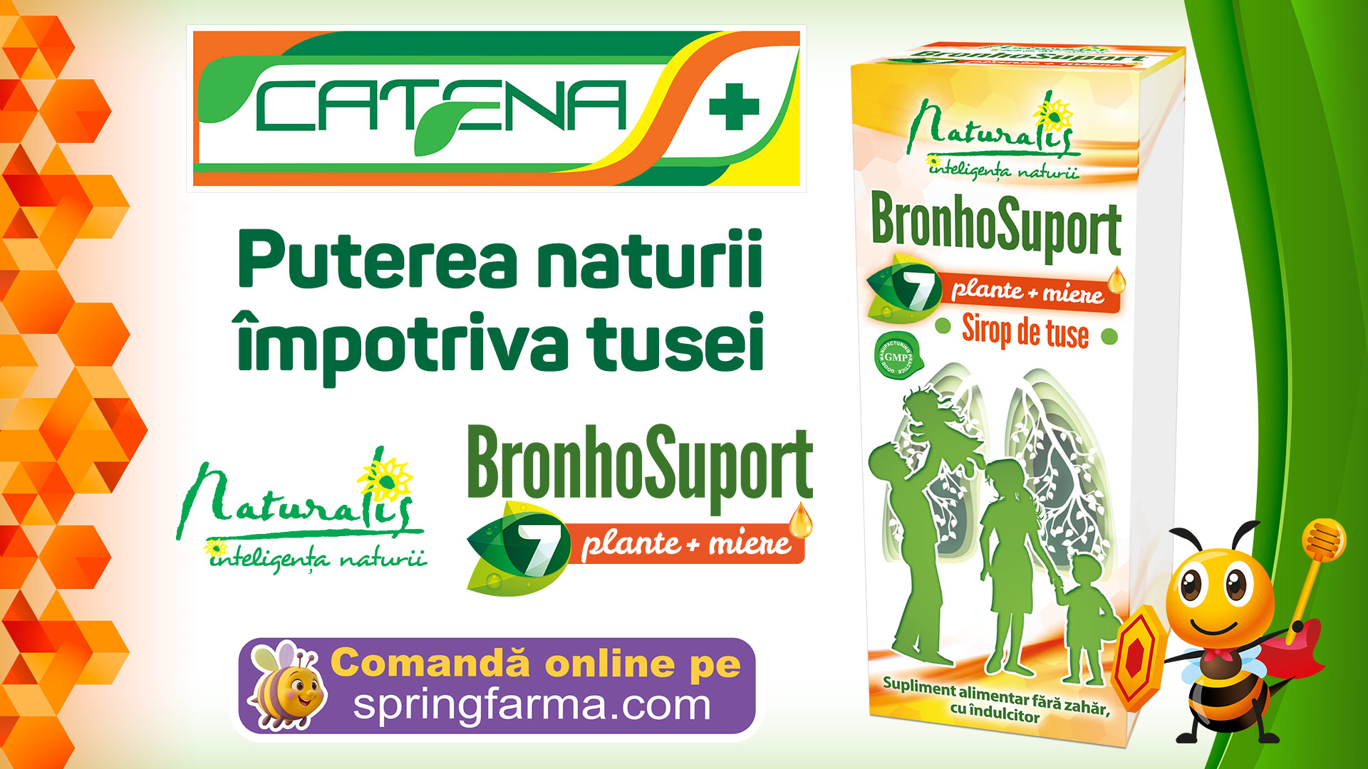 Acestor extracte li se asociază adesea ingrediente cu rol emolient, precum mierea, care ajută la protejarea mucoasei gâtului și la diminuarea senzației de uscăciune sau disconfort local. Un bun exemplu în acest sens este Naturalis BronhoSuport 7 plante + miere, o formulă în care extractele vegetale și mierea naturală acționează sinergic pentru susținerea sănătății căilor respiratorii.