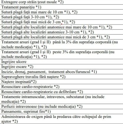 În tabelul următor sunt nominalizate noile servicii medicale adiţionale care vor putea fi acordate asiguraţilor de la 1 aprilie, conform curriculei de pregătire a medicului: