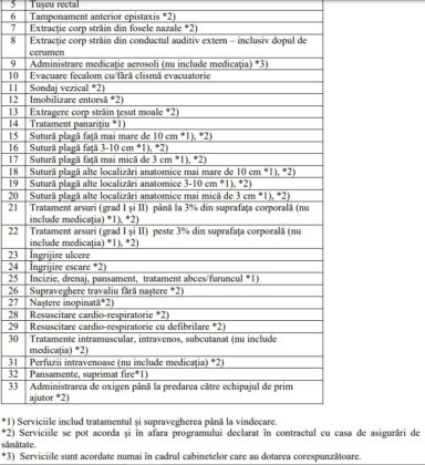 Pe de altă parte, tot de la 1 aprilie asiguraţii înscrişi pe lista unui medic de familie vor putea beneficia de peste 20 de servicii adiţionale noi, potrivit curriculei de pregătire a medicului, dacă proiectul de Ordin comun al MS şi CNAS va intra în vigoare în forma anunţată de CNAS. Printre acestea se numără îngrijirea escarelor şi ulcerelor, perfuzii intravenoase, tratament pentru panariţiu. Economica.net vă prezintă în tabelul de mai jos câteva exemple de servicii adiţionale noi pe care le vor putea acorda medicii de familie de la 1 aprilie, conform curriculei de pregătire.