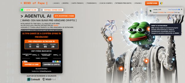 Într-o perioadă în care multe monede de tip meme au încetinit, proiectele axate pe AI, în special cele care dezvoltă agenți inteligenți, încep să acapareze scena. MIND of Pepe e chiar în centrul acestui val, mai ales ținând cont că pre-vânzarea se va încheia în doar 11 zile.