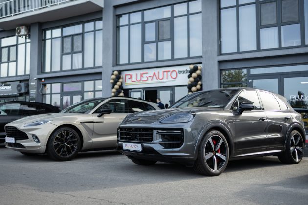 Noul showroom Plus Autotrade din Oradea expune o gamă variată de modele de mașini, printre care: Aston Martin DBX, Porsche Cayenne Turbo S, Porsche 911 Cabrio, Alfa Romeo Stelvio Quadrifoglio, BMW XM, și multe altele.