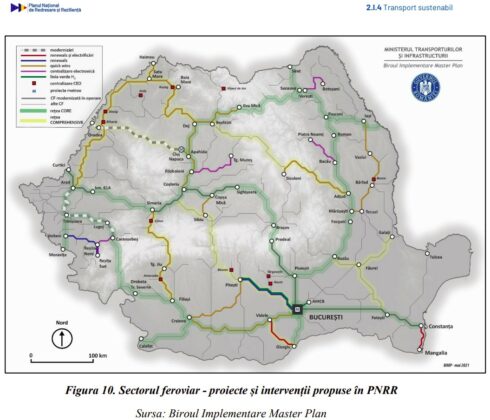 Tot la capitolul feroviar este menționată achiziția de material rulant nou, respectiv 20 de trenuri electrice și 12 trenuri alimentate cu hidrogen (250 milioane de euro – finanțarea solicitată prin PNRR), 100 de vagoane (50 milioane de euro), dar și 30 de locomotive modernizate (60 de milioane de euro).