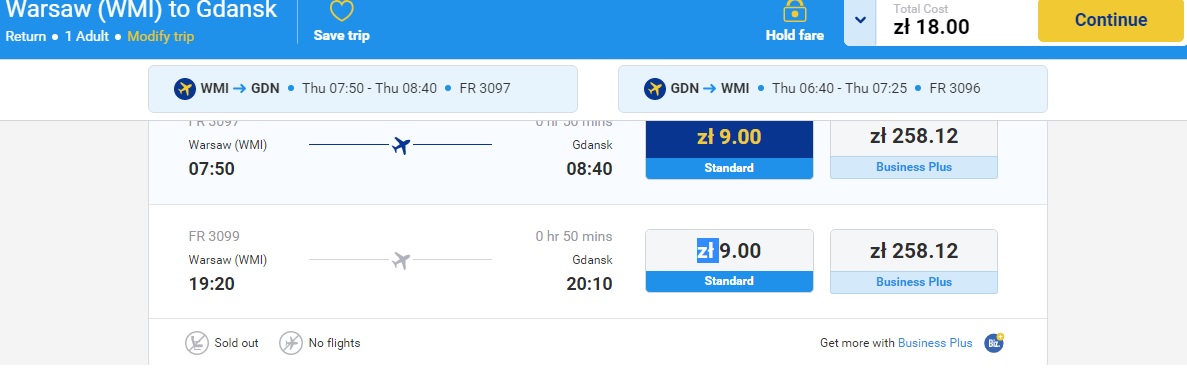 Compania aeriană Ryanair, care a intrat în 2014 pe piața zborurilor interne din Polonia vine cu prețuri incredibile la biletele de avion de rut Varșovia-Gdansk, un zbor ce durează 40 de minute: 2 euro pentru un segment. Bilete la acest preț se găsesc și pentru călătoriile efectuate în lunile martie, aprilie, mai și iunie 2016.