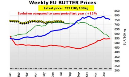 Până pe 13 iulie, când prețul mediu în UE ajunsese la 733 de euro, existau piețe precum Cehia unde untul se tranzacționa la o medie de 868 de euro, cel mai ieftin fiind atunci în Polonia, de 721 euro suta de kilograme.