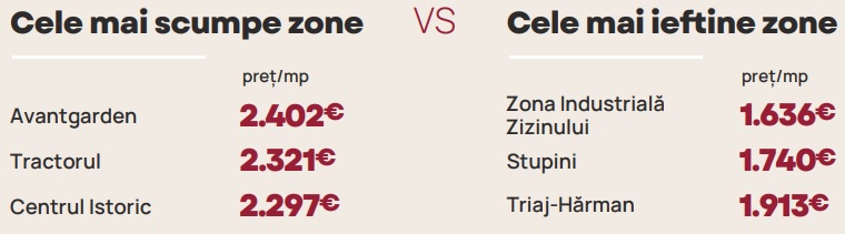 Brașov este al doilea cel mai scump oraș la prețul pe mp la apartamente, iar cel mai scump cartier este Avantgarde, cu o medie de 2.400 de euro/mp. Cele mai ieftine locuințe din orașul de la poalele Tâmpei se găsesc în zona industrială Zizinului, unde media este de 1.636 de euro/mp.