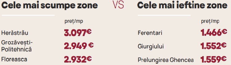 Cu o creștere anuală de 18% a prețurilor la locuințe și o medie de 2.129 de euro/mp, Bucureștiul se află pe locul trei. Aici, cea mai scumpă zonă este Herăstrău, cu o medie ce trece ușor de 3.000 de euro/mp. În Ferentari, prețul mediu este la jumătate.