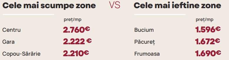 Sub 1.900 de euro/mp este media pentru apartamentele din Iași, cu Centru care are cele mai mari prețuri și cu Bucium, unde sunt cele mai ieftine.
