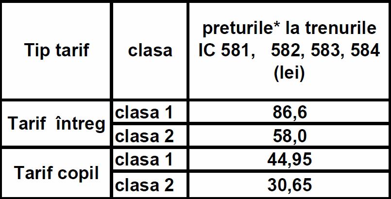 CFR Călători a anunţat că preţurile biletelor la trenurile InterCity pe ruta Bucureşti-Nord – Constanţa şi retur vor fi egale cu cele pentru trenurile InterRegio. Promoţia se aplică numai la tarifele de preţ întreg şi este valabilă atât pentru adulţi, cât şi pentru copii.
