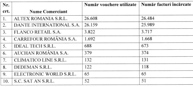 La mică distanță de Altex, Dante International, operatorul magazinului online eMAG, a primit de la persoanele fizice înscrise în Program aproximativ 26.200 de vouchere, în timp ce Flanco, al doilea retailer electroIT după cifra de afaceri, a atras doar 3.800 de vouchere.