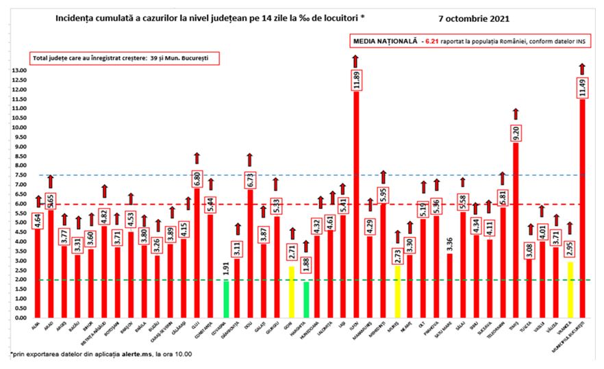 Media naţională a ratei de infectare este de 6,21 la mia de locuitori.