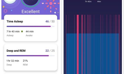 Monitorizarea somnului m-a suprins de cât de precisă este. Înregistrează exact ora la care ai adormit și nu o confundă, de exemplu, cu timpul în care te uiți la liniștit la un film, așa cum mi s-a mai întâmplat cu astfel de dispozitive. A doua zi poți vedea în aplicație cât timp ai petrecut în toate fazele somnului și primești un scor și un raport complet (pentru utilizatorii Premium).