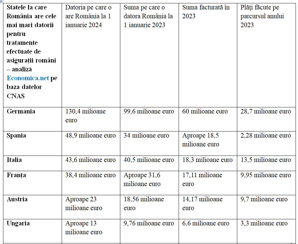 Germania, Spania şi Italia sunt statele cărora le datorăm cele mai mari sume, arată analiza Economica.net pe baza datelor CNAS.