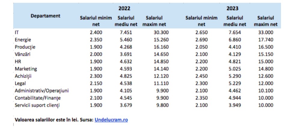 Analiza noastră ne arată că salariile au crescut în 2023 în toate domeniile și pe toate segmentele valorice. Astfel, deficitul de candidați din piață determină angajatorii să facă și mai multe eforturi în găsirea oamenilor potriviți, iar această situație vine la pachet și cu o calibrare mai bună între profilurile acestora și așteptările salariale pe măsură. Totodată, modificarea anuală a indicelui prețurilor de consum a pus și poate pune o presiune și mai mare pe creșterile salariale. Însă, dincolo de inflație sau lipsa de oameni, un factor important în evoluția salariilor în următorii ani îl va constitui transparentizarea obligatorie a acestora în spațiul Uniunii Europene, un pas necesar în care noi am crezut încă din 2011 de când am lansat platforma Undelucram”, a declarat Costin Tudor, CEO și fondator al Undelucram.ro.