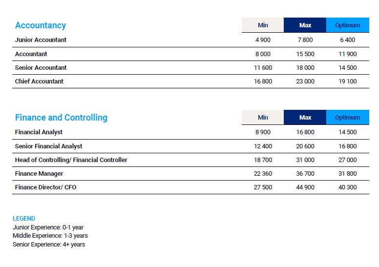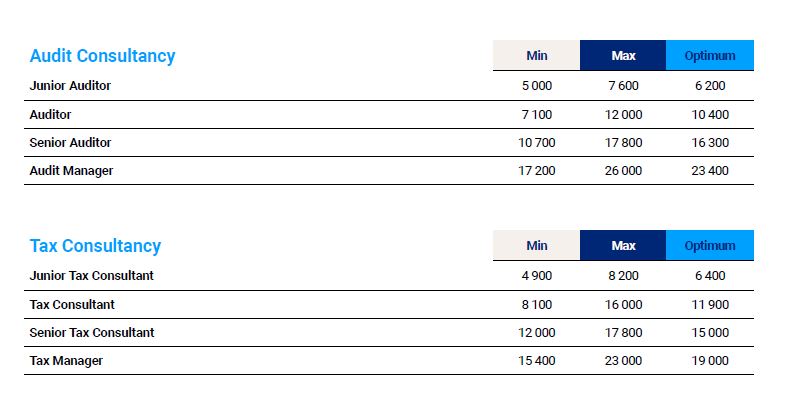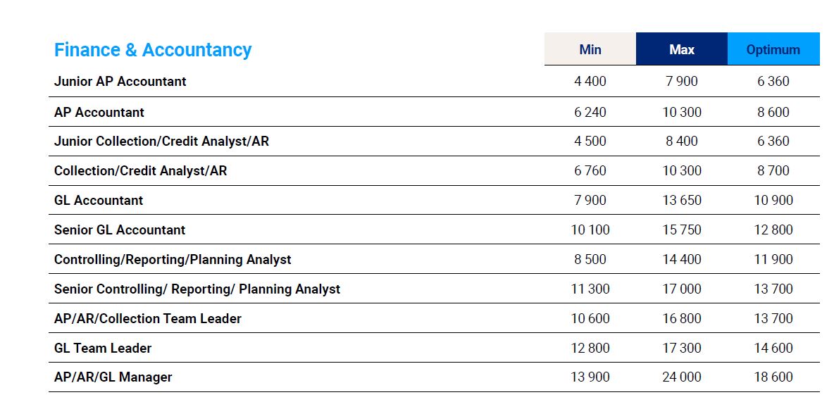 Salariile brute pentru normă întreagă oferite în Contabilitate, conform ghidului salarial Hays: