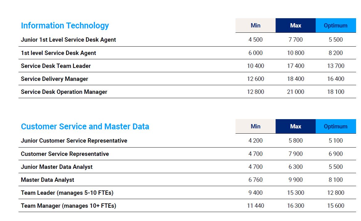 Salariile brute pentru normă întreagă oferite în BPO, conform ghidului salarial Hays: