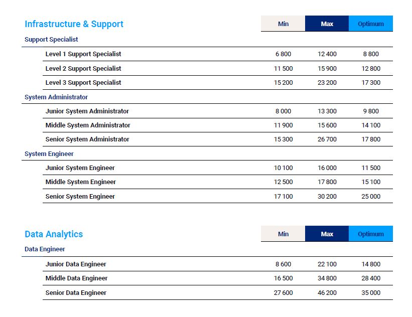 Grilele salariale prezentate mai jos vizează valorile brute ale salariilor oferite, pentru normă întreagă, în 2025, fără bonusuri, prime şi alte elemente ale salarizării.