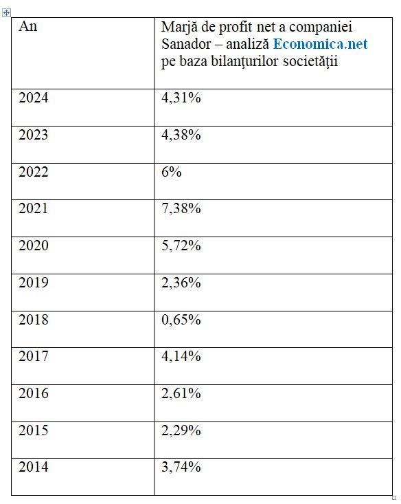 Sanador a avut marjă de profit net de 4,31% în anul 2024, cu 0.07 puncte procentuale mai mică decât cea realizată în anul 2023, arată calculele Economica.net pe baza bilanţurilor companiei.
