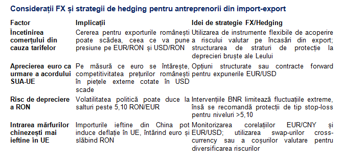 Această mișcare va antrena fluctuații și asupra EUR/USD, și implicit asupra RON. La o primă vedere, o variație de 0,5-1% poate părea nesemnificativă. Dar pentru companiile care operează cu volume mari și marje restrânse, o asemenea modificare poate însemna pierderi substanțiale.