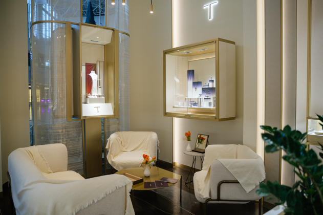 Magazinul este situat sub cupola vitrată a Atriumului Palas, având o fațadă inedită. Aceasta redă monograma brandului într-o interpretare unică, ce constă într-o succesiune de panouri decorative, cu efect tridimensional.
