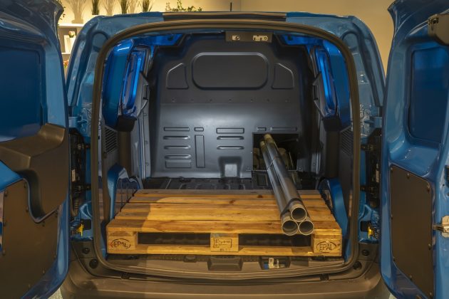 Furgonul, Transit, permite o capacitate de încărcare crescută în toate direcțiile. Lățimea dintre pasajele roților din spate este de 1.222 mm, permițând furgonului compact să transporte pentru prima dată doi europaleți. Volumul total de încărcare este acum de 2,9 mc, cu 25% mai mult decât modelul anterior. În plus, grație unei nișe din peretele despărțitor și a plierii scaunului pentru pasagerul din dreapta, pot fi transportate obiect – precum scări sau țevi – cu o lungime de până la 2,6 metri.
