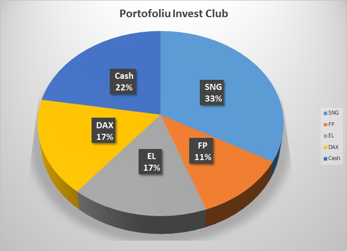 Portofoliul este constituit din acţiuni Romgaz (SNG), în proporţie de 33% din total active, Electrica (EL, 17%) şi Fondul Proprietatea (FP, 11%). O proporţie de 17% este acoperită de instrumente legate de indicele Bursier DAX, al Bursei din Frankfurt şi 22% este cash.