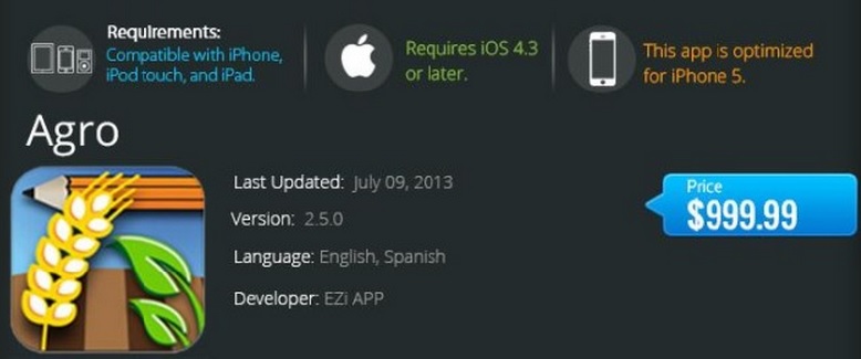 Sunt toate aceste aplicaţii scumpe o scamatorie? Nu toate, spun cei de la Top Apps. O altă aplicaţie, care costă tot 999.9 dolari, îi ajută pe studenţii la drept să treacă de examenul de barou, iar Agro, este folosită de fermieri pentru a ţine evidenţa culturilor. Iar MogiGage este destinată să-i ajute pe producători să-şi pună comenzile în ordine.