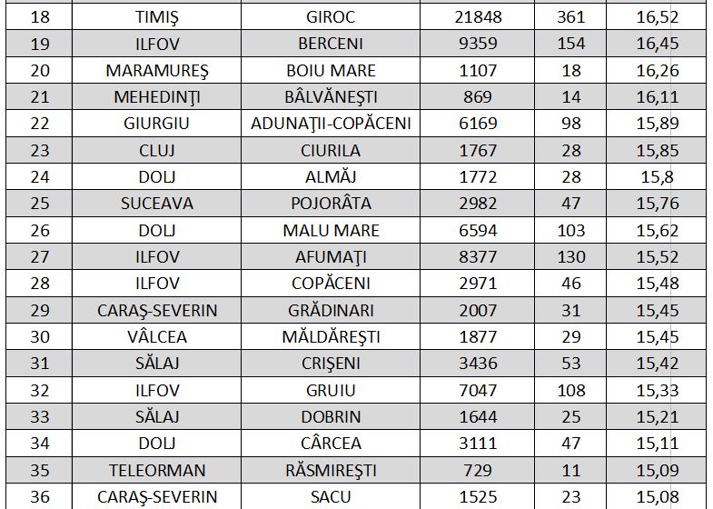 Lista completă a oraşelor şi localităţilor cu rată de infectare peste 3 la mia de locuitori în ultimele 14 zile poate fi consultată aici