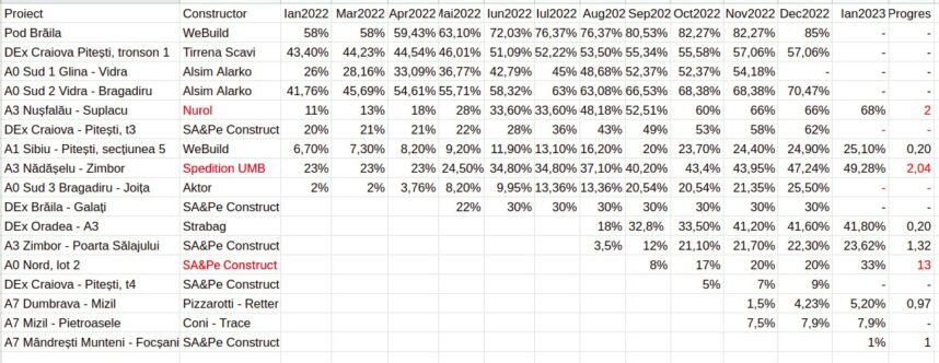 Pe restul șantierelor monitorizate nu au fost actualizate însă datele privind stadiul lucrărilor.