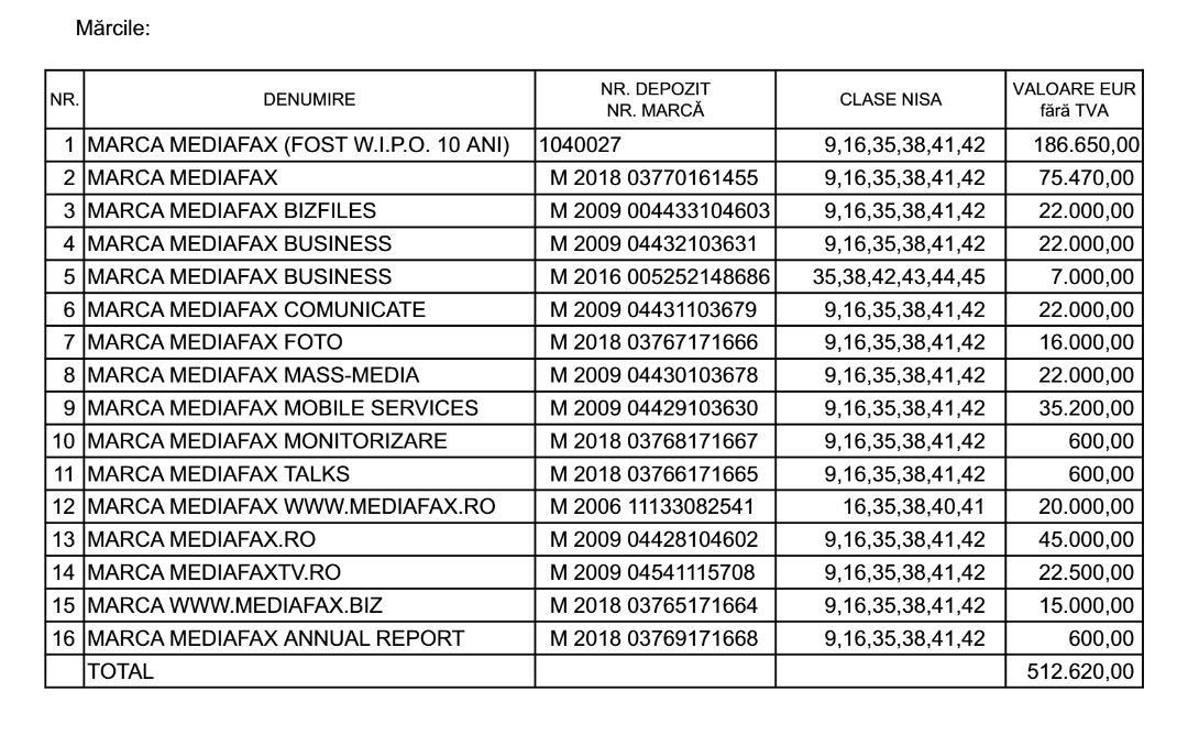 Nuanţat, Budeanu a cumpărat, prin intermediul firmei sale Titluri Quality, 16 mărci Mediafax, înregistrate la OSIM, pentru care plăteşte, în total, peste 500.000 de euro fără TVA, se arată în decizia de vânzare a firmei, obţinută de Economica.net.