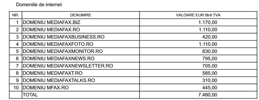 Radu Budeanu a cumpărat 10 domenii de internet de sub cupola Mediafax, pentru care achită, în total, 7.480 de euro fără TVA.