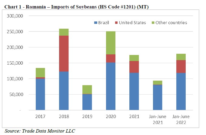 „Pentru a-și acoperi cererea de furaje, România importă soia și făină de soia, în principal din țările producătoare de GE”, potrivit unui raport al USDA.