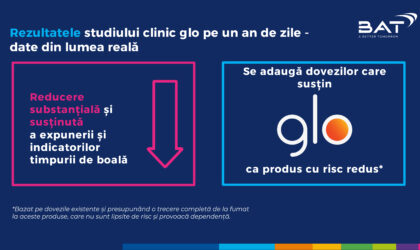 Rezultatele complete ale unui studiu efectuat pe durata unui an de zile arată că fumătorii care au trecut exclusiv la glo, cel mai inovator produs din portofoliul BAT care încălzește, nu arde tutunul, au obținut îmbunătățiri semnificative și susținute în privința mai multor indicatori de potențial de risc asociat dezvoltării timpurii a unor afecțiuni (între care boli pulmonare, cancer și boli cardiovasculare), în comparație cu cei care au continuat să fumeze.