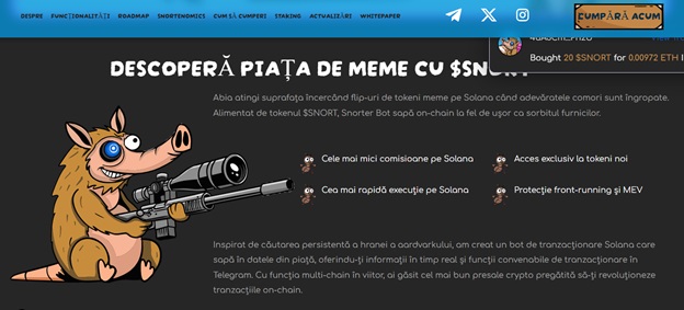 În top criptomonede noi lansate recent în presale, Snorter Token se remarcă printr-o combinație rară de originalitate și funcționalitate. Deși la prima vedere pare o monedă inspirată de universul memelor, proiectul are în spate un produs real: un bot de tranzacționare integrat direct în Telegram.