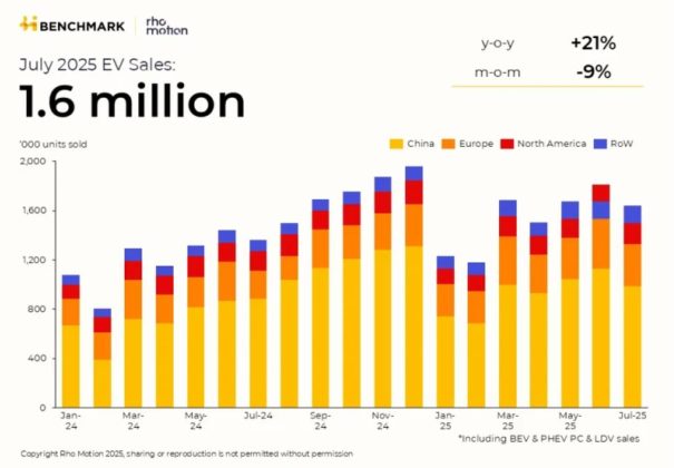 Un studiu realizat de compania de consultanță Rho Motion arată că vânzările globale de vehicule electrificate au crescut cu 21% în iulie, până la 1,6 milioane de unități, față de aceeași perioadă a anului trecut. Este cea mai lentă rată de creștere din ianuarie până acum și sub ritmul de creștere de 25% din iunie.