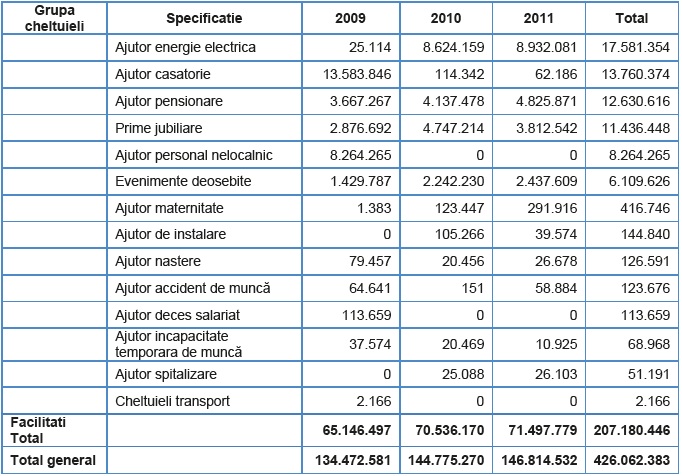 „Salariaţii Hidroelectrica beneficiază de un fond destinat cheltuielilor sociale, din care se suportă: acordarea de cadouri în bani sau în natură salariaţilor pentru copiii acestora în vârsta de până la 18 ani, inclusiv cei care împlinesc această vârstă în cursul anului calendaristic respectiv, cadouri în bani sau în natură acordate salariatelor, costul prestaţiilor pentru tratament şi odihnă, inclusiv transportul, pentru salariaţii proprii şi pentru membrii de familie ai acestora, ajutoare pentru salariaţii care au suferit pierderi în gospodărie, care se suportă din fondul destinat cheltuielilor sociale”, se arată în raport.