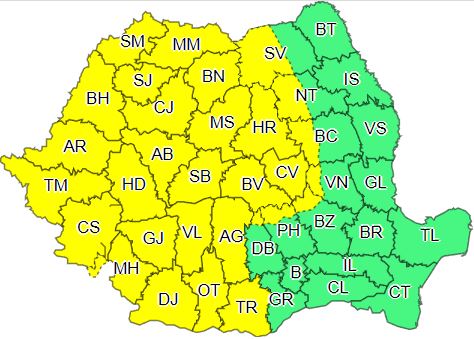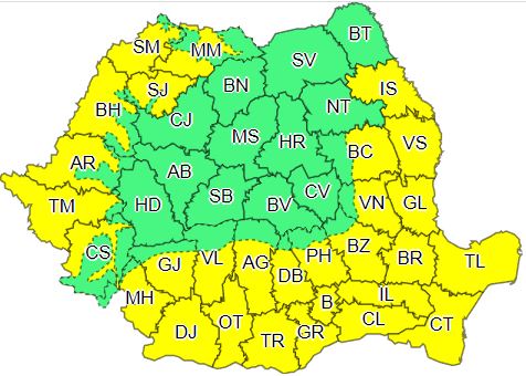 otrivit sursei citate, miercuri, între orele 10:00 – 21:00, vor fi perioade cu instabilitate atmosferică accentuată local în zonele montane, Transilvania, Maramureş, Crişana, Banat, Oltenia şi vestul Munteniei. De asemenea, pe parcursul intervalului, vor fi averse torenţiale, descărcări electrice, intensificări ale vântului şi pe alocuri vijelii şi grindină. În intervale scurte de timp sau prin acumulare cantităţile de apă vor depăşi 25 – 30 l/mp şi pe arii restrânse 40 – 50 l/mp, scrie Agerpres.