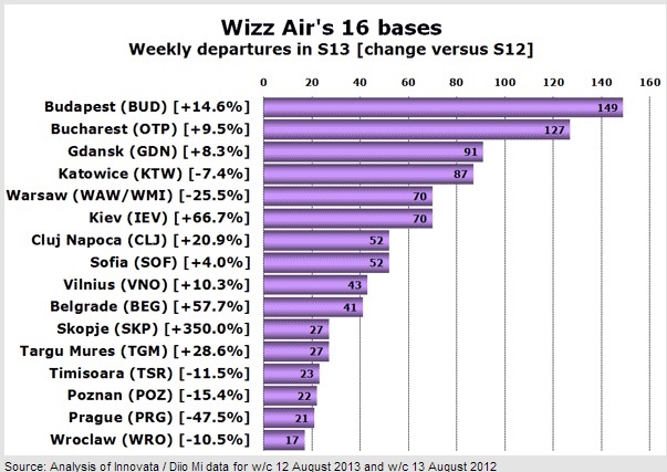 Compania aeriană nu prea face dezvăluiri despre mişcările din interior, şi mai ales despre performanţele financiare. Dar, ce se poate analiza este reţeaua de rute. Anna.aero a analizat programul pentru august 2013 cu cel precedent, de unde a reieşit că Wizz Air, cu tot cu Wizz Air Ucraina, a renunţat la 25 de rute de pe 26 de aeroporturi în ultimele 12 luni. Printre rutele la care a renunţat, se regăseşte şi ruta Bucureşti – Memmingen (sudul Germaniei).