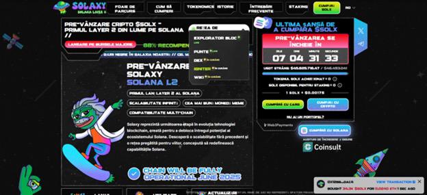 Cu peste 45,8 milioane de dolari adunați în presale, Solaxy se impune ca una dintre cele mai rapid și mai de succes presale-uri din industrie. Este primul Layer-2 pe Solana care vine cu o promisiune clară: să ofere utilitate reală, care ar putea transforma radical performanța rețelei Solana. Deci, nu este de mirare de ce a devenit unul dintre cele mai fierbinți presale-uri în ultimele luni.