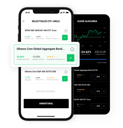 Nu în ultimul rând, după ce au stabilit suma pe care doresc să o aloce pentru a-și construi Planul de Investiții, clienții vor putea stabili ce procent din această sumă să fie alocat fiecărui ETF din plan, fără să fie nevoiți să acorde atenție fiecărui instrument în parte.